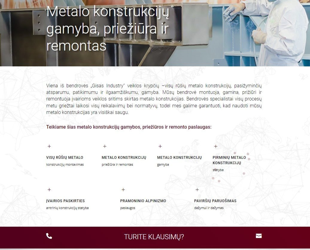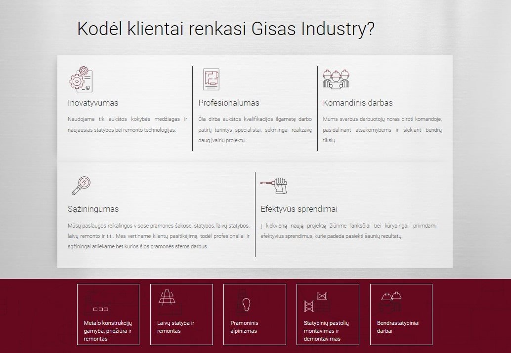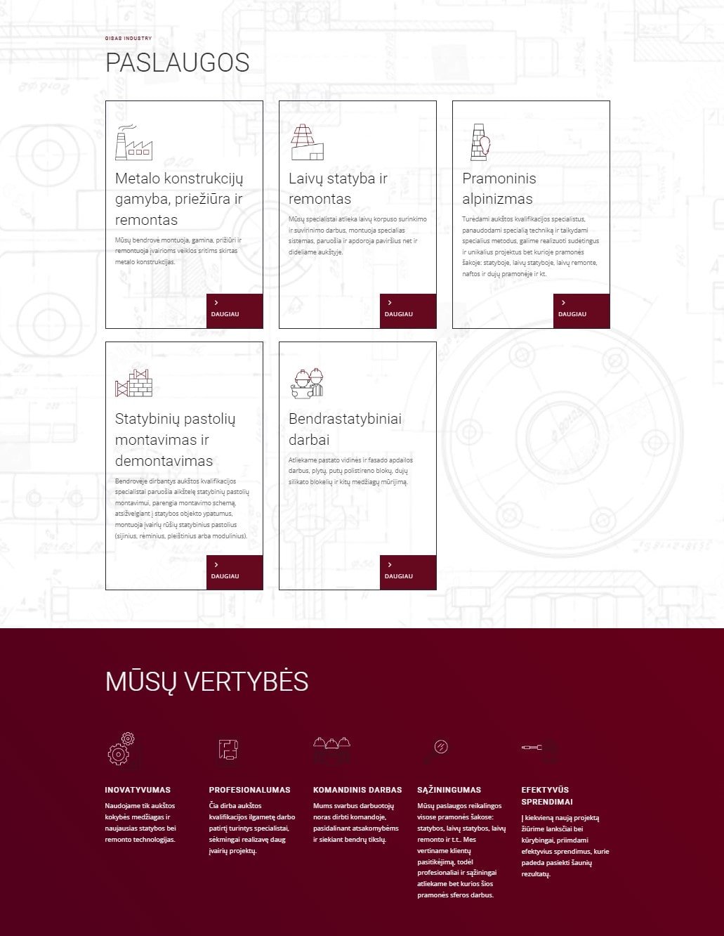 - Vidiniuose puslapiuose pristatomos teikiamos paslaugos ir įmonės vertybės, kuriomis vadovaujamasi įgyvendinant projektus.