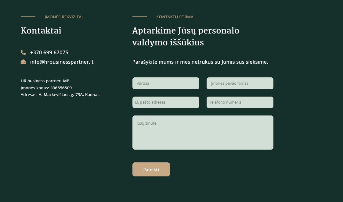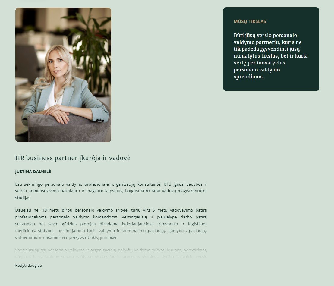 Įmonės veiklos sritis: personalo valdymo paslaugos