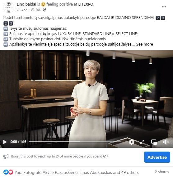 Reklaminė kompanija Facebook tinkle apie įgyvendintą projektą