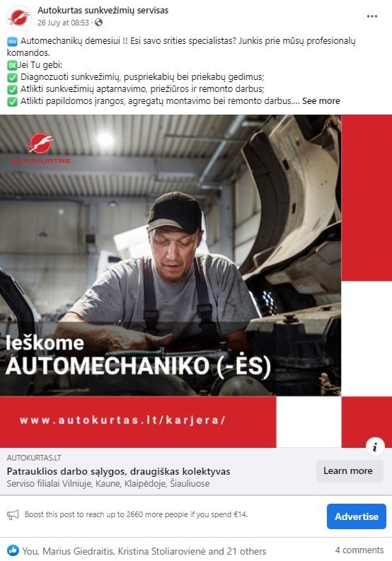 Darbuotojų pritraukimo reklaminė kompanija Facebook socialiniame tinkle