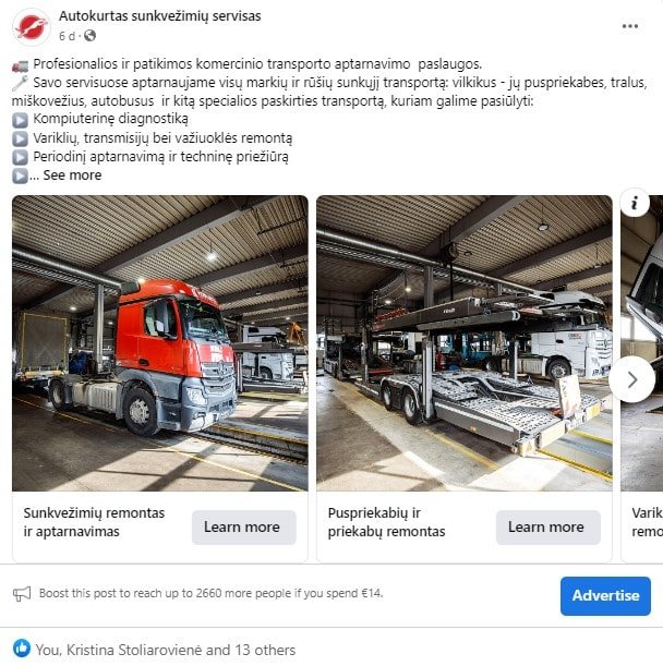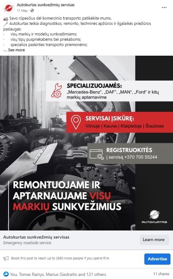 Reklaminė kompanija Facebook tinkle pristatanti serviso paslaugas