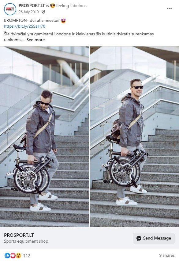 pristatyti Brompton dviračius Facebook ir Instagram auditorijoms.