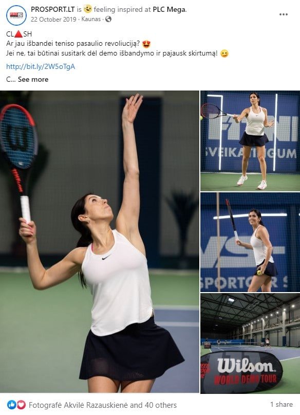 atlikta fotosesija teniso kortuose (Kaune), sukurtas edukuojantis tekstinis įrašas ir reklaminė kompanija.