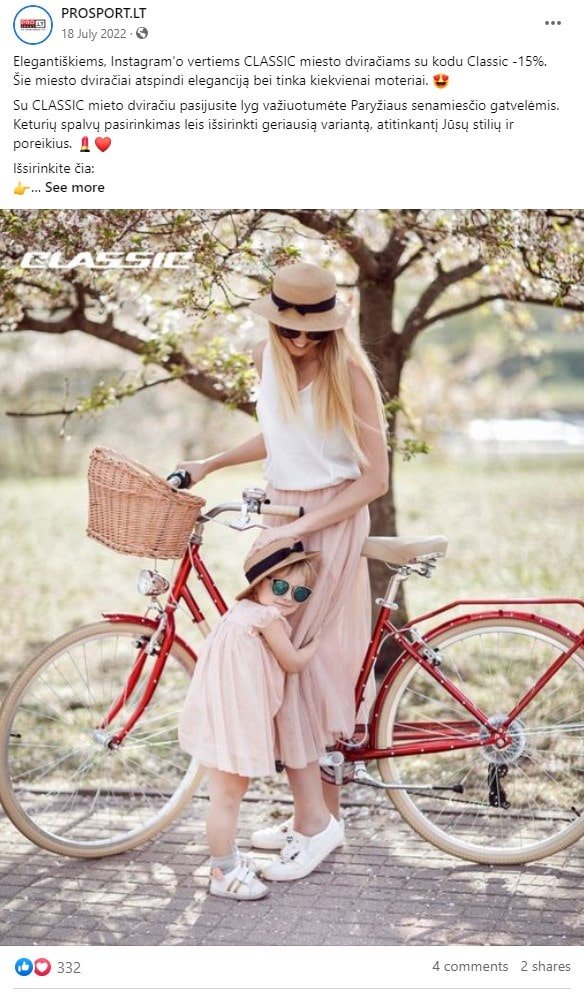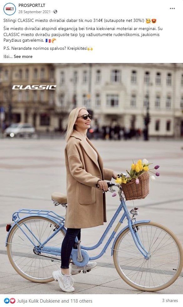 pristatyti Classic moteriškus dviračius Facebook ir Instagram auditorijoms.